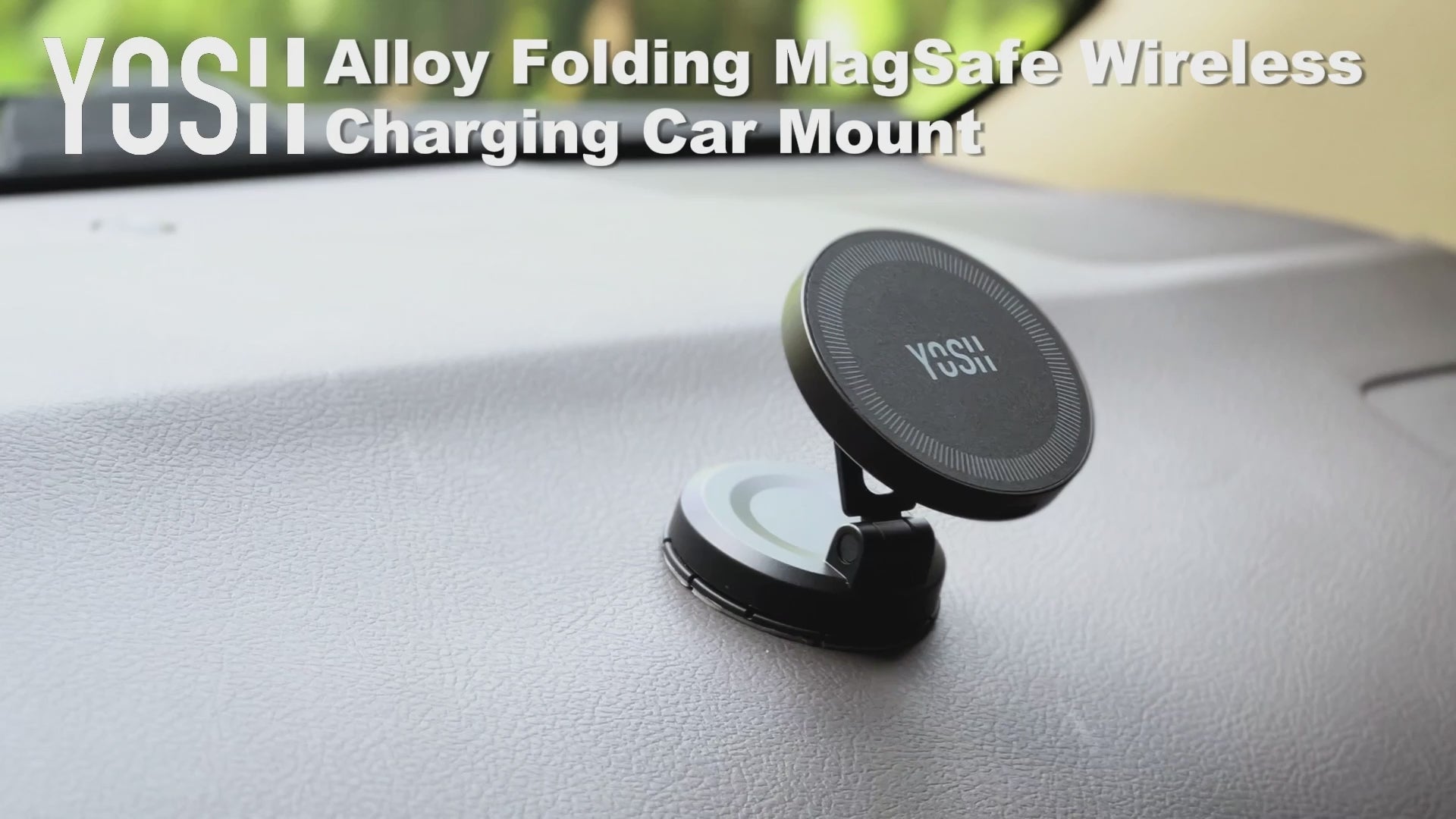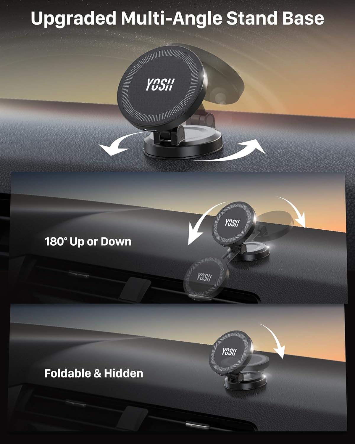 YOSH MagSafe Car Charger Mount, 15W Fast Charging Magnetic Wireless Car Charger, Alloy Folding Design for Dashboard with 20x N55 Magnets for iPhone 17/16/15/14/13/12 Series Samsung