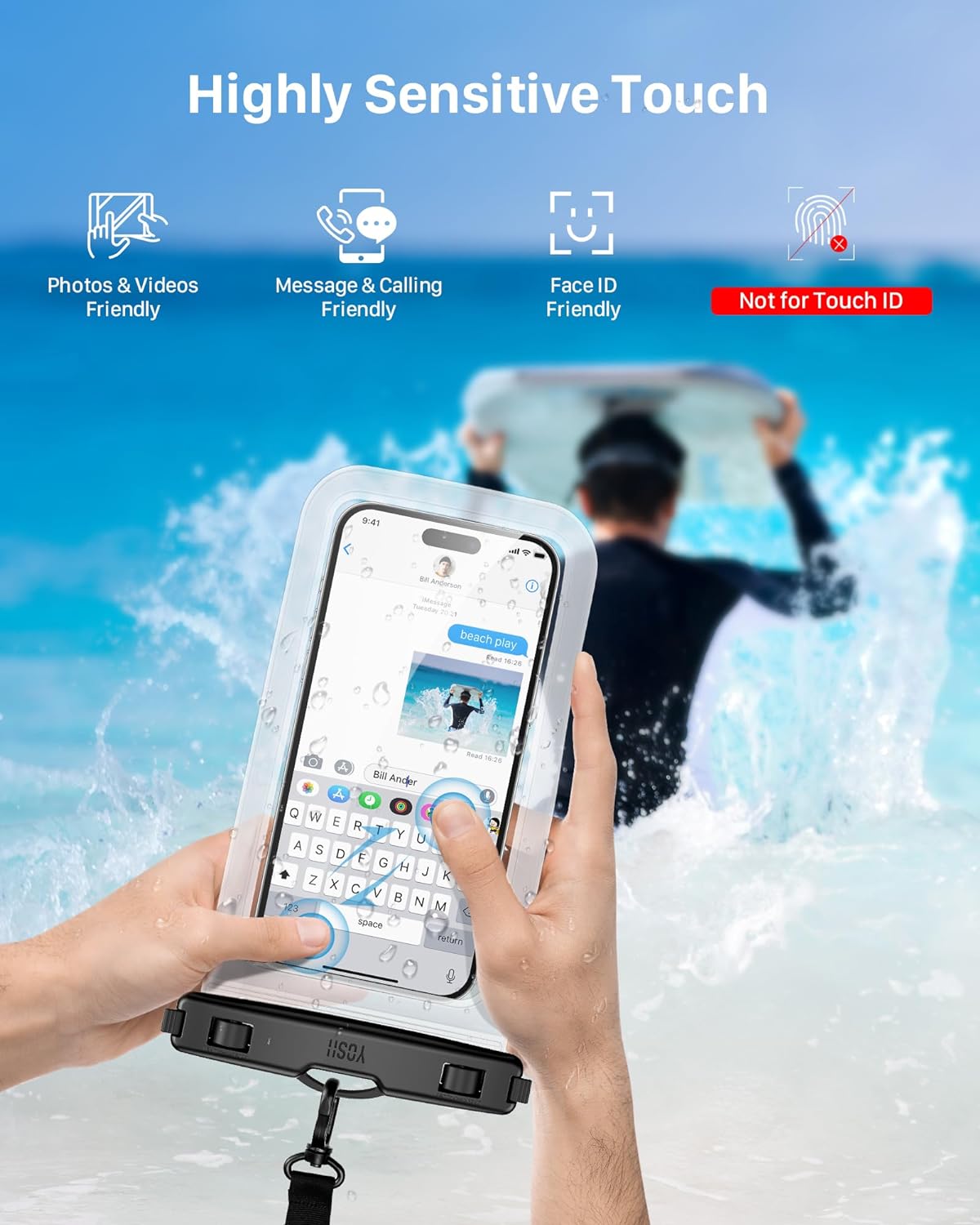 - Utilisation à tout moment et n'importe où : avec l'étui étanche pour téléphone portable YOSH, vous pouvez profiter d'activités de plein air telles que la plongée avec tuba, le kayak, le canotage, la natation, le beach-volley, le surf et le ski, ou une utilisation domestique comme dans le bain, la cuisine. Conseils : il est normal que vous ne puissiez pas utiliser l'écran tactile sous l'eau en raison de la pression de l'eau à certaines profondeurs d'eau. Mais vous pouvez utiliser le bouton de volume pour prendre des photos et des vidéos.