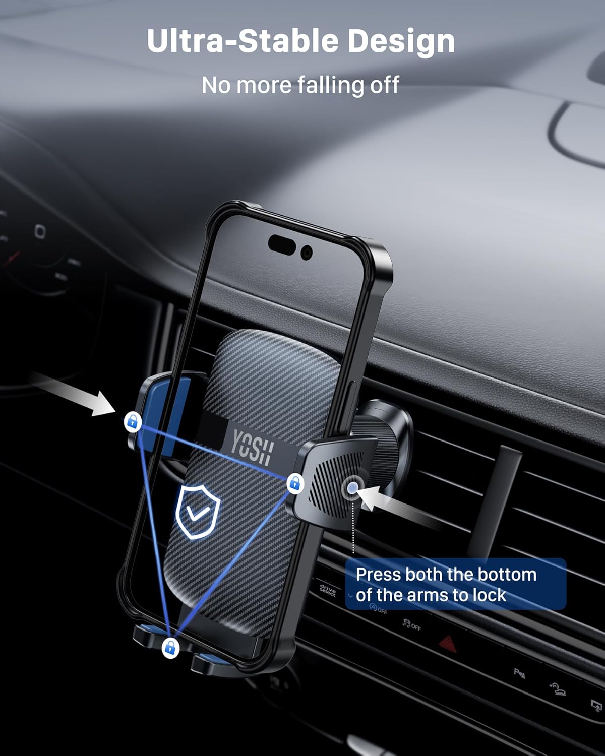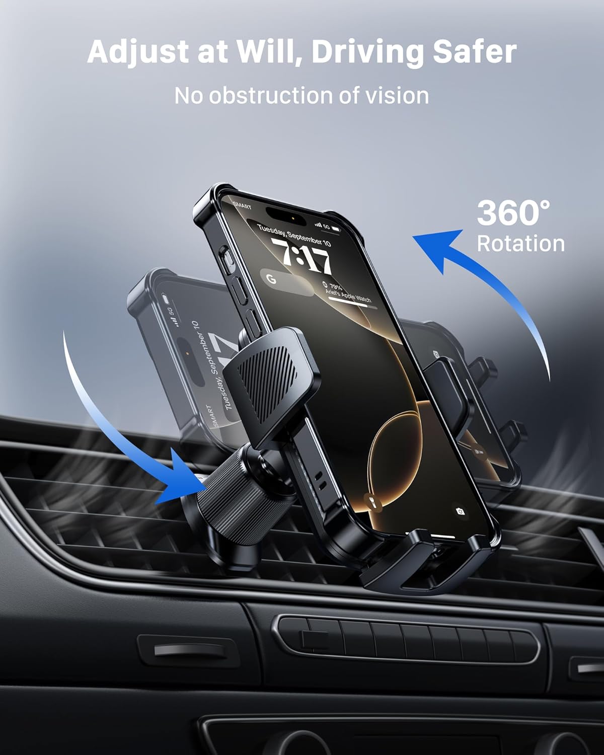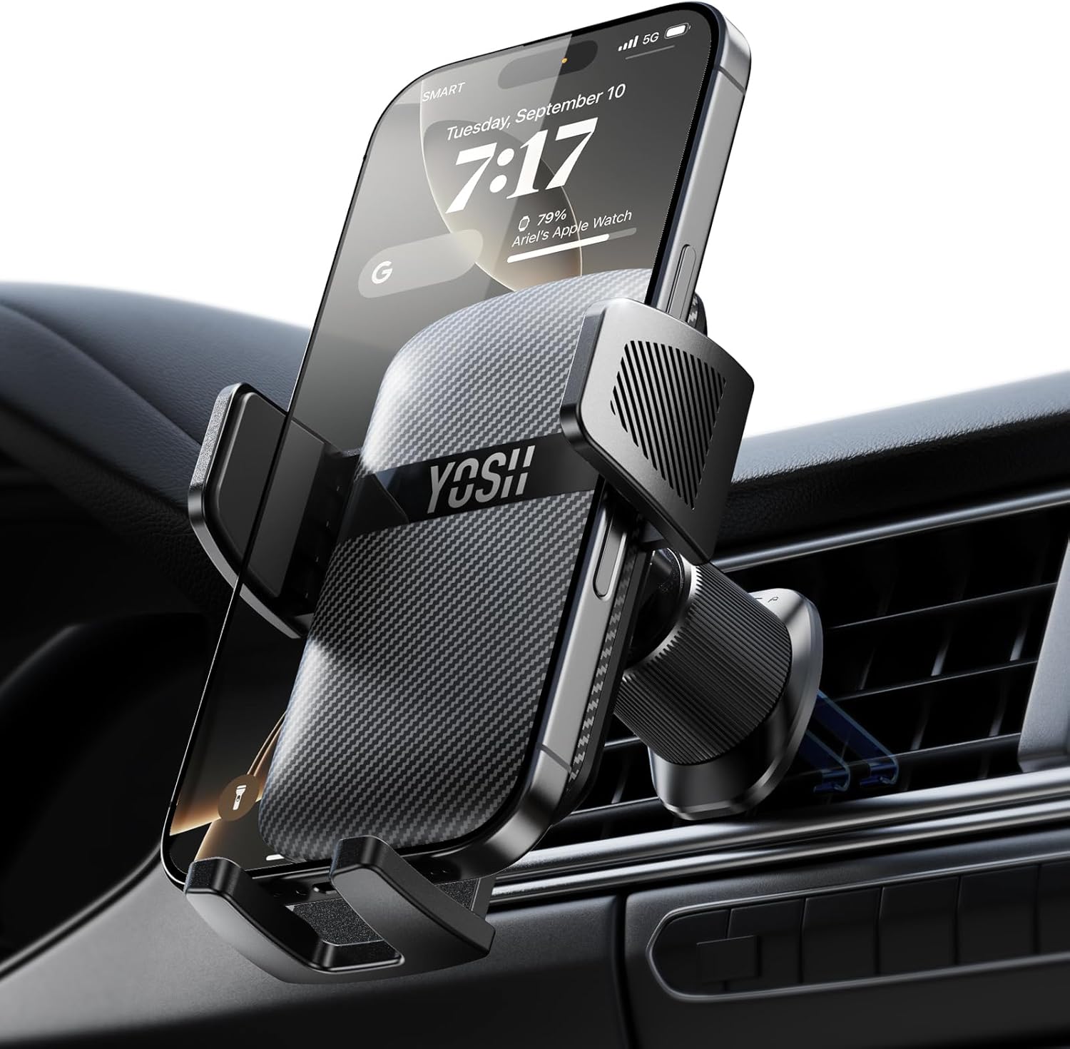 YOSH Car Phone Holder Air Vent, Upgrade 360° Rotation Car Phone Mount with Adjustable Ultra-Stable Clamp, iPhone Holder for iPhone 17 16 15 14 13 12 11 Pro max X Samsung S24 S23 etc