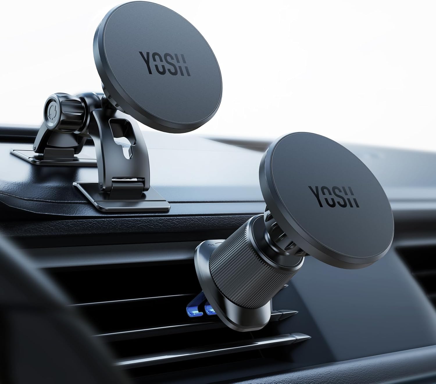 YOSH MagSafe Autohalterung, 2 in 1 Handyhalterung Auto [Metall-Doppelhaken & 3M-Basis] für Dashboard & Lüftung, Magnetische Handyhalter fürs Auto, für iPhone 17/16/15/14/13/12, ohne Metallplatte